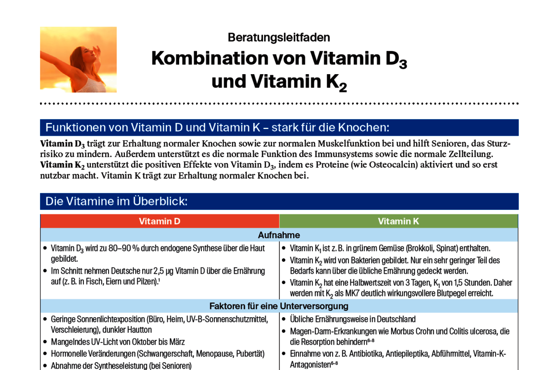 Beratungsleitfaden Kombination von Vitamin D3 und Vitamin K2