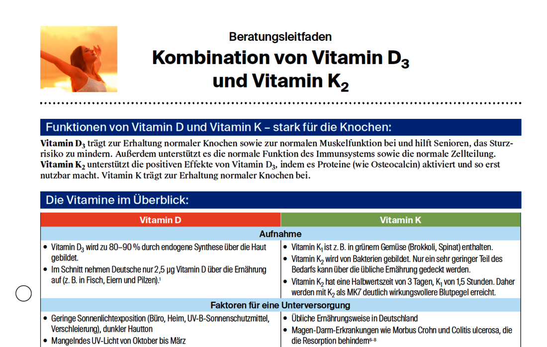 Beratungsleitfaden Kombination von Vitamin D3 und Vitamin K2