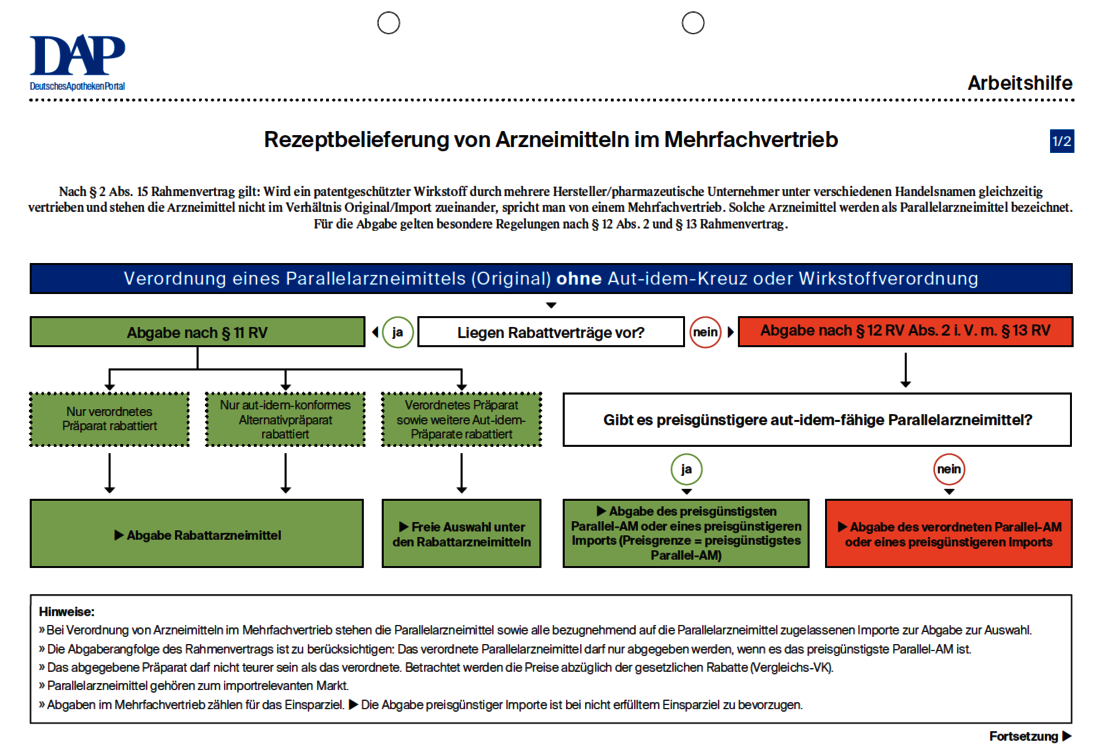 Arbeitshilfe Rezeptbelieferung bei Arzneimitteln im Mehrfachvertrieb