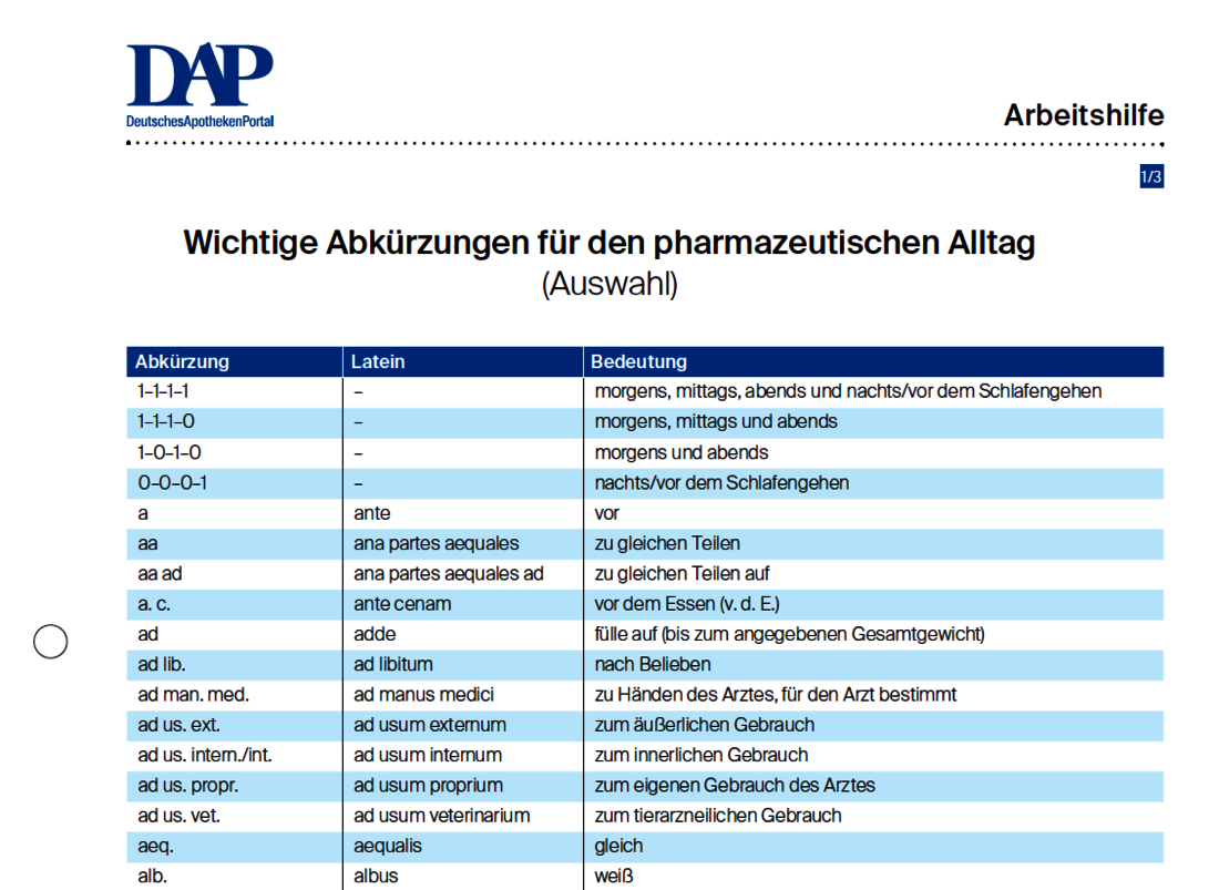 Arbeitshilfe Abkürzungen für den pharmazeutischen Alltag