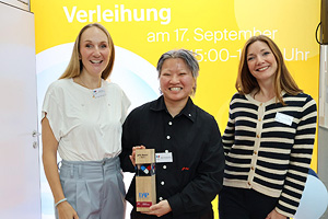 Abb.: Preisträgerinnen Christiane Lubig, Hoai Phuong Duong und Juliane Kuhnt aus den Apo theken mit Herz (v. l.)