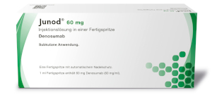 Mit JUNOD® steht ab sofort ein Biosimilar zu Prolia® zur Verfügung. Das Präparat wird angewendet zur Behandlung von Osteoporose bei postmenopausalen Frauen und Männern mit erhöhtem Frakturrisiko. Es dient außerdem der Behandlung von Knochenschwund bei Männern mit Prostatakarzinom unter Hormonablation sowie zur Therapie von Glucocorticoid-induziertem Knochenschwund bei erwachsenen Patienten mit erhöhtem Frakturrisiko.1