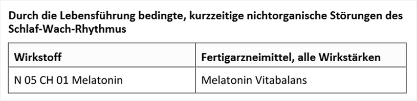 Der Arzt hat jedoch die Möglichkeit, Patienten, die über 55 Jahre alt sind, ein anderes Melatonin-Arzneimittel aufzuschreiben, wie zum Beispiel Circadin, das als „Monotherapie für die kurzzeitige Behandlung der primären, durch schlechte Schlafqualität gekennzeichneten Insomnie bei Patienten ab 55 Jahre“ zugelassen ist und zulasten der GKV abgegeben werden kann. Hier gelten die Verordnungsvorgaben nach Anlage III der AM-RL für Hypnotika und Sedativa, die Sie in Ihrer Frage bereits genannt haben.