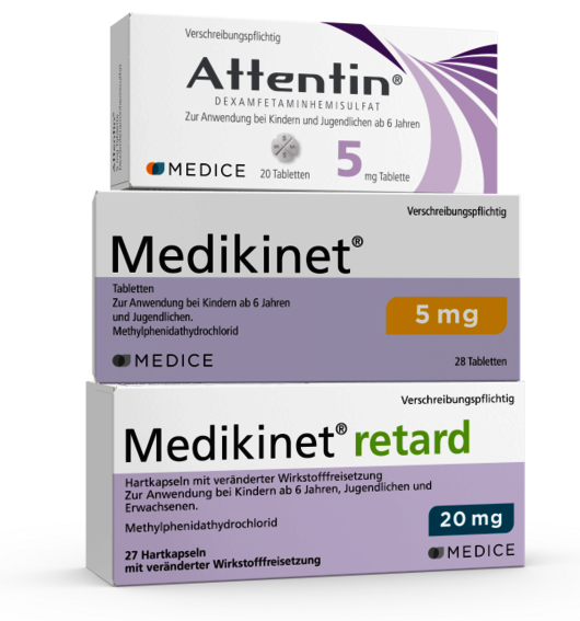 Es handelt sich um neue Packungsdesigns, die die Arzneimittel Medikinet®, Medikinet® retard und Attentin® betreffen. Dank der neuen Farbcodierung je Wirkstärke bei Medikinet® und Medikinet® retard wird die Unterscheidung und Zuordnung der Präparate für Ärztinnen und Ärzte, das Apothekenpersonal und auch Patientinnen und Patienten vereinfacht.