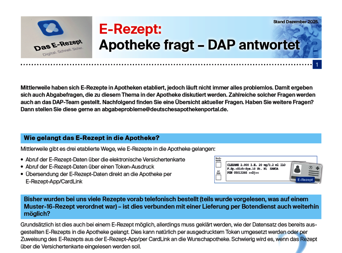 Mit dem zunehmenden Anteil an E-Rezepten in der Apotheke nimmt auch die Zahl der Fragen zu diesem Thema zu. In der nachfolgenden Übersicht haben wir aktuelle Fragen und Antworten für Sie zusammengestellt.