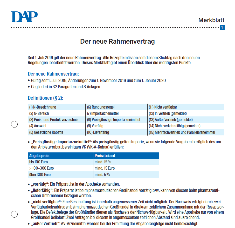 Die Änderungen, die der neue Rahmenvertrag (gültig seit 1. Juli 2019) mit sich gebracht hat, hat DAP auf dem folgenden Merkblatt zusammengefasst.