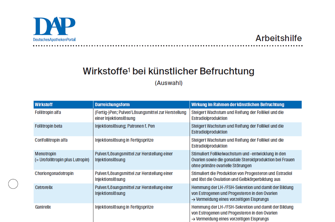 Arbeitshilfe Wirkstoffe bei künstlicher Befruchtung