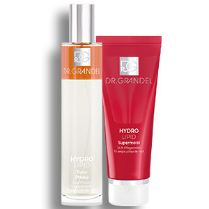 Hydro Lipid, die ist Serie für die reife Haut, die anspruchsvolle Haut, überzeugt durch wertvolle Naturöle und Epigran. Die Haut erhält von außen gezielt Fett, Feuchtigkeit und regenerationsfördernde Wirkstoffe. Supermoist-24-h Pflegecreme steigert den Feuchtigkeitsgehalt und schenkt der Haut ein seidig-glattes Aussehen. Das Two-Phase Konzentrat mit zwei getrennten Phasen, einer Feuchtigkeits- und einer Fett-Phase, entfaltet durch Schütteln eine unvergleichliche Wirkung. Das Hydro Lipid Set hat einen Wert von 104,00 Euro. Infos unter www.grandel.de