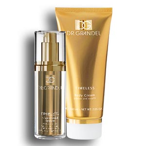 Die Serie Timeless von Dr. Grandel setzt auf hochaktive Wirkstoffkombinationen und die jugendliche Kraft der Buchenknospen. Sie minimiert Linien und Fältchen und verbessert die Zellerneuerung. Das Niacinamid Serum mit 10% Niacinamid glättet, regeneriert und mindert Pigmentflecken. Die straffende Körperpflege Body Cream stärkt das Bindegewebe, glättet die Hautoberfläche und verleiht der Haut einen zart goldenen Schimmer. Das Timeless Set hat einen Wert von 116,00 Euro. Infos unter www.grandel.de