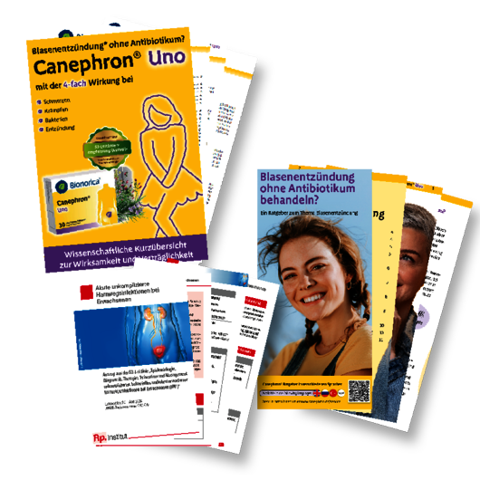 Als Ergänzung zum DAPärchen-Wissensspiel stellt Bionorica Ihnen vertiefende Informationsmaterialien rund um das Thema akute unkomplizierte Harnwegsinfektionen zur Verfügung. Die folgenden Unterlagen können Sie für Ihre tägliche Beratung in der Apotheke nutzen oder für die fachliche Auffrischung heranziehen: